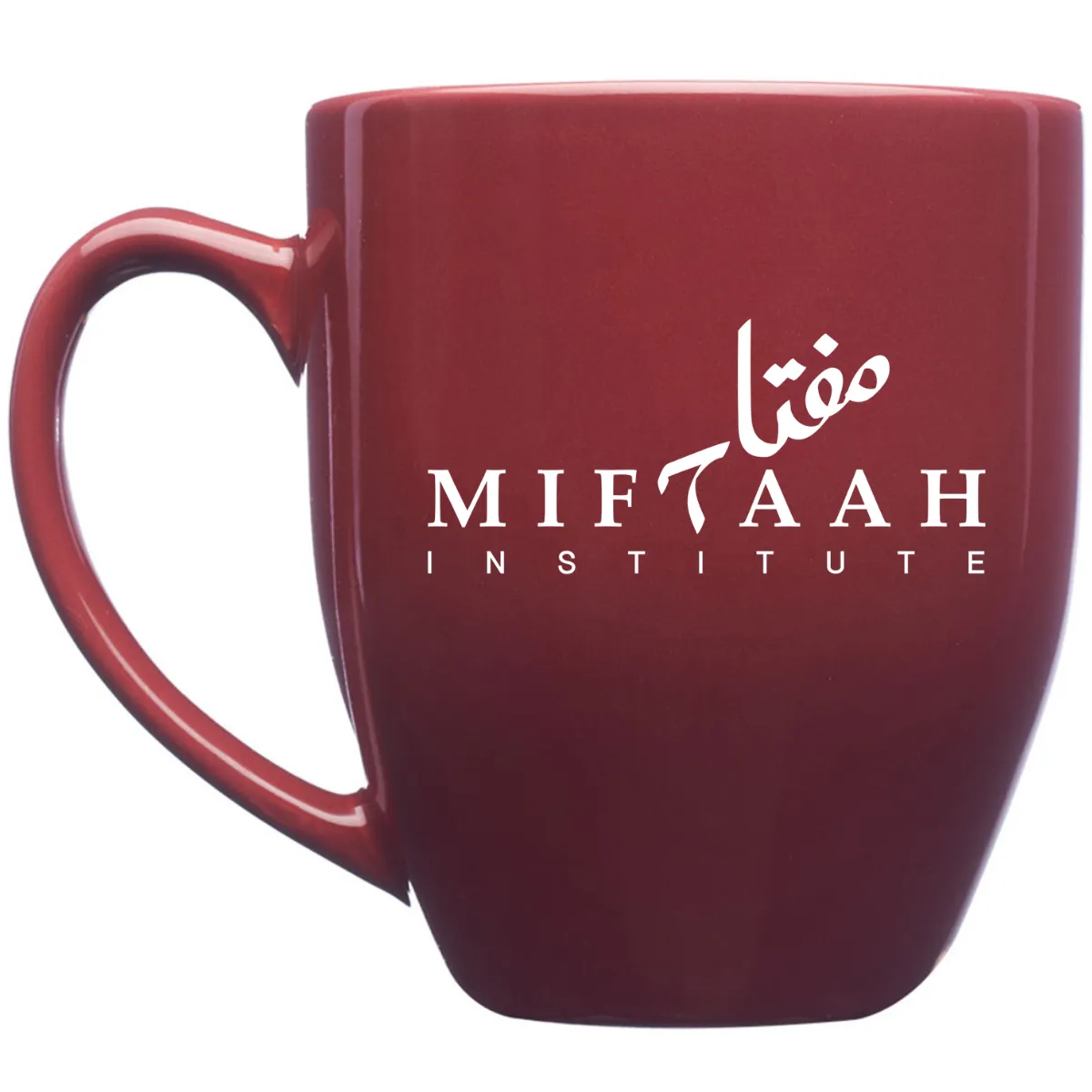 - 16oz Bright Colors Bistro Mugs. - Made of stoneware. - Bistro style wide body drink customized coffee mugs. Smooth molded ceramic composite. Two-toned glossy vibrant color exterior bright white interior. High curved grip for easy grab‐n‐go handling.